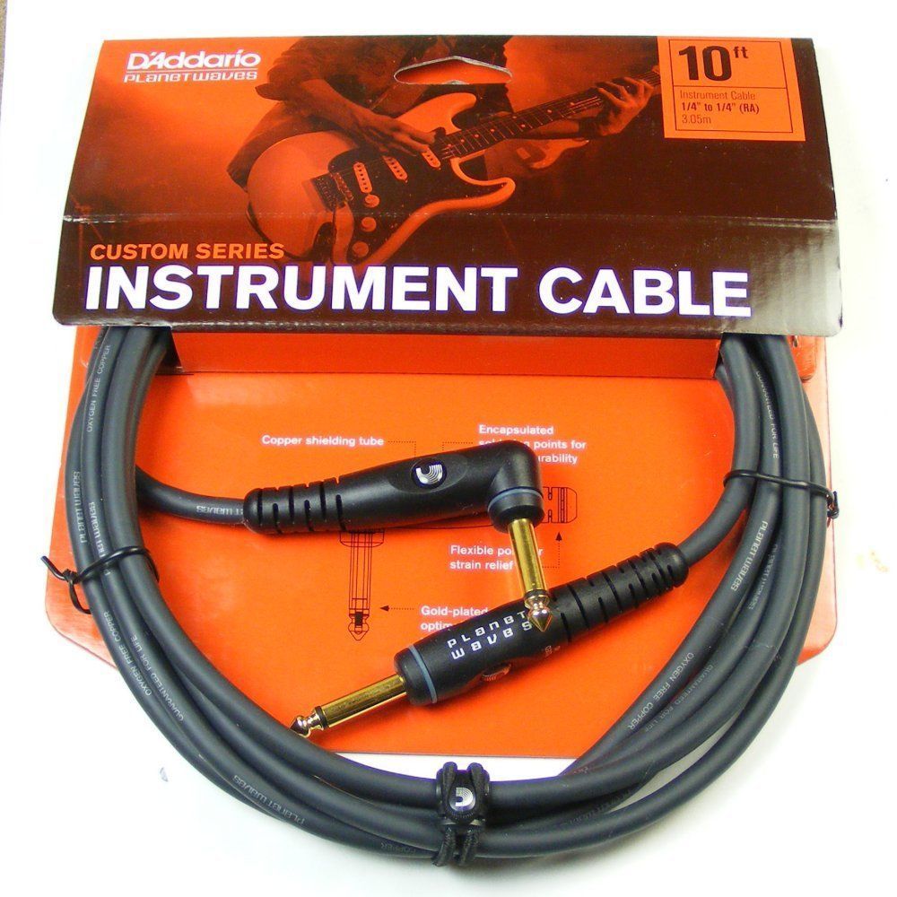 Kabel z serii Custom Series Instrument Cables, długość 10′ (3 m), jeden wtyk kątowy. Pozłacane wtyki zapewniają pewny styk ze standardowym 1/4” (6,35 mm) gniazdem jack. Specjalnie zaprojektowany, podwójnie izolowany i podwójnie ekranowany kabel zapewnia najczystszy z dostępnych sygnał, eliminując przydźwięk sieciowy i trzaski związane z pracą (ruchem) kabla. Zatopione złącza Planet Waves zapewniają wyjątkowo skuteczną ochronę połączenia, uwalniając Cię od stresu.