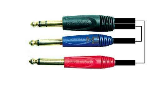 złącza: 1 wtyk jack 6,3 mm. stereo zalewany, 2 wtyki jack 6,3 mm. mono zalewane