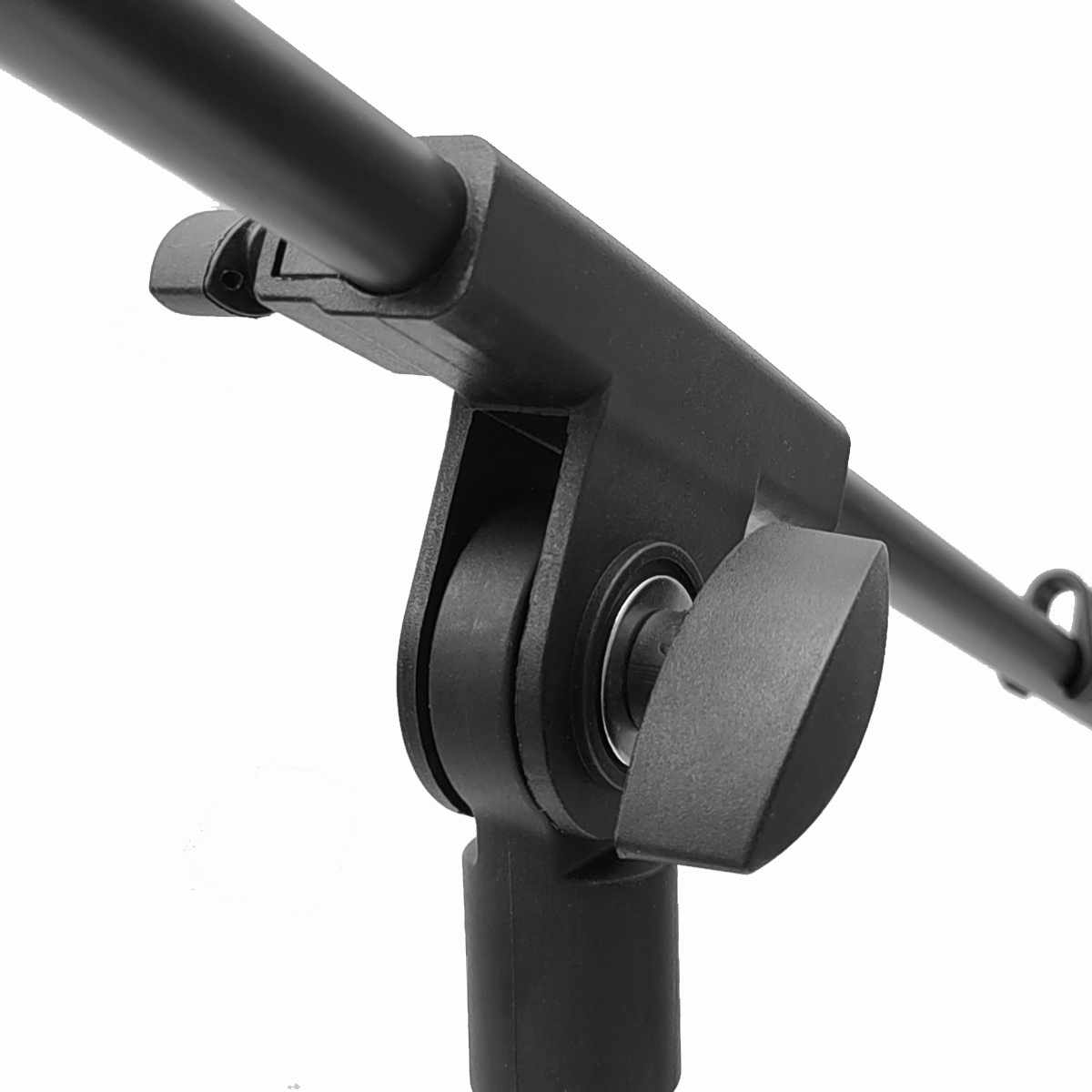 - Uchylne ramię: Szybka i prosta regulacja kąta nachylenia ramienia sprawia, że statyw do mikrofonu jest jednym z najbardziej elastycznych i łatwych w użyciu na rynku. Możesz dostosować go do swojego komfortu i potrzeb, bez tracenia cennego czasu na skomplikowane montaże.
