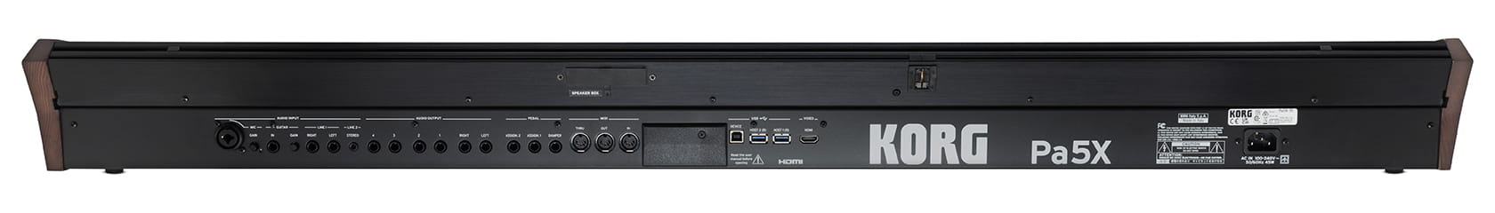 Pa5X oferuje mnóstwo połączeń audio, kontrolerów i pamięci masowej. Możesz użyć złącz MIDI i USB do podłączenia kontrolerów lub urządzeń pamięci masowej, HDMI do zewnętrznego wyświetlacza, złączy audio XLR, jack i minijack do mikrofonów pojemnościowych i dynamicznych, gitar, gitar basowych, smartfonów i tabletów. Możesz podłączyć instrument do aktywnego zestawu nagłośnienia używając głównych wyjść, lub aż czterech niezależnych wyjść przez które można wypuszczać dowolne ścieżki.