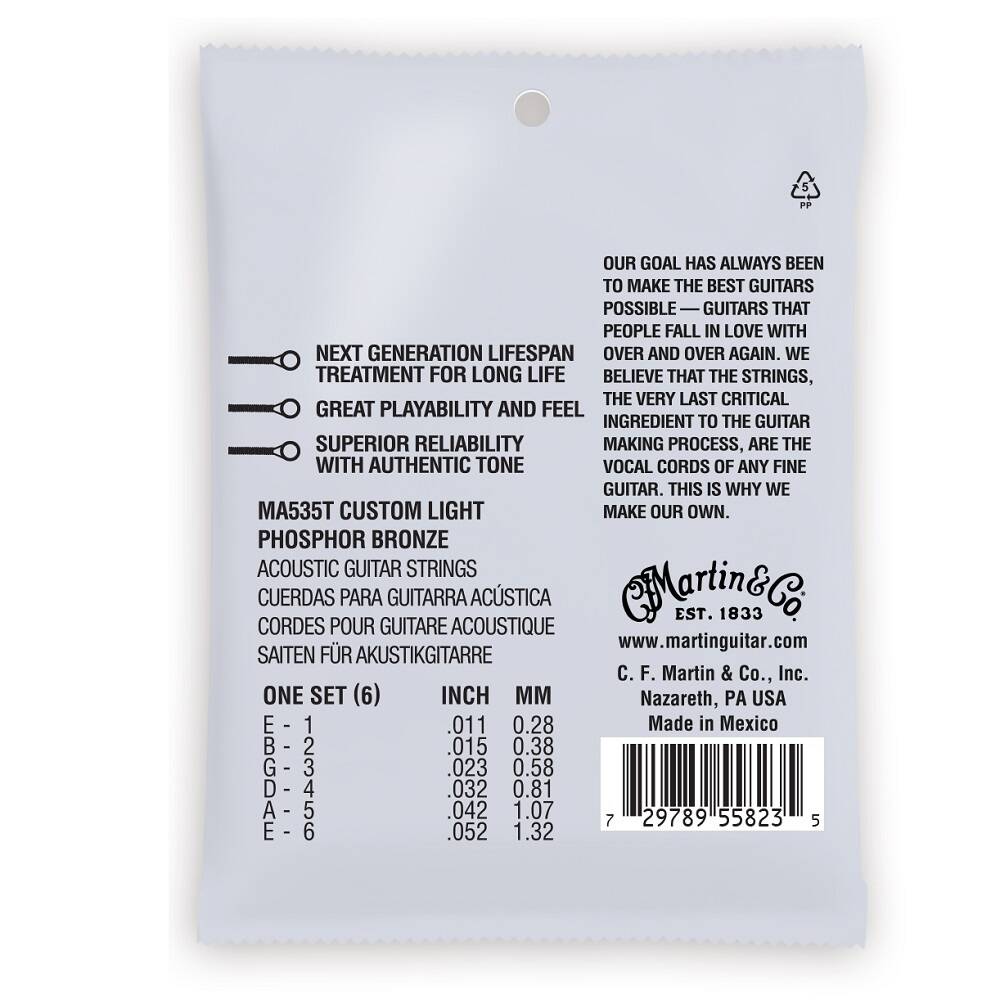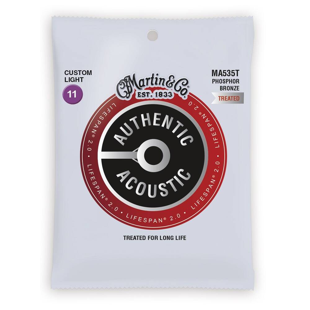 Struny następnej generacji Lifespan 2.0 są zaprojektowane w oparciu o nową, opatentowaną technologię dostępną tylko od firmy Martin. Ta technologia została opracowana w celu ochrony drutu rdzeniowego i drutu owijającego, aby zapobiec korozji bez pogarszania jakości dźwięku. Struny Authentic Acoustic Lifespan 2.0 wyglądają lepiej, brzmią lepiej i są lepsze w odczuciu pod palcami, zapewniając płynną grę.